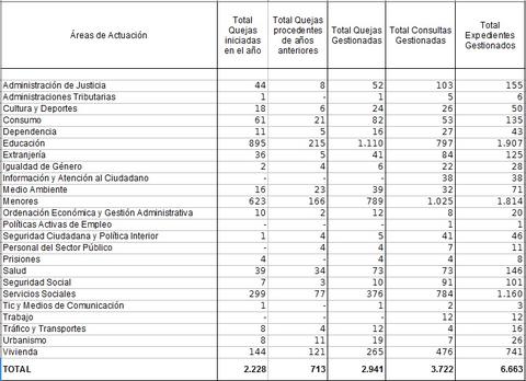 Durante el pasado año fueron 6.663 actuaciones en menores por parte de este comisionado parlamentario, único en el territorio nacional, de las cuales 2.941 se refieren a quejas y 3.722 a consultas. En asuntos de infancia, adolescencia y juventud se tramitaron un total de 2.228 expedientes de queja (+22,6%), de los cuales 2.195 fueron instados por la ciudadanía y 33 se iniciaron de oficio promovidos por la Institución. Junto con estas actuaciones se realizaron otras 713 más, procedentes de quejas iniciadas en años anteriores. Las consultas, por su parte, crecieron un 19%.